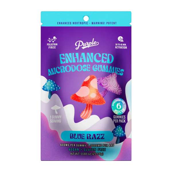 Purple Mushroom Enhanced Microdose Gummies Blue Razz